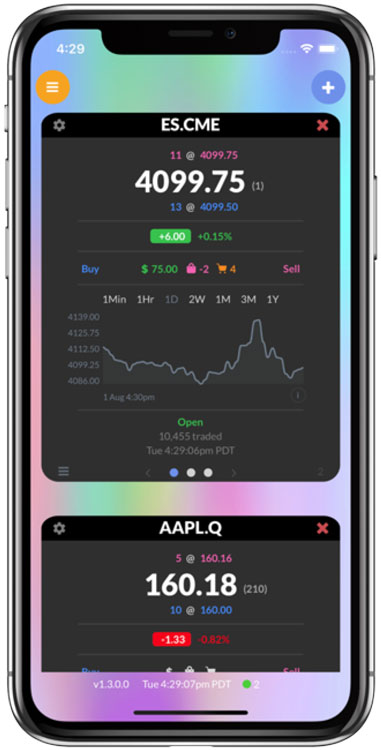 • Each tile displays a different contract and allows traders to swipe through three different panels within each tile.